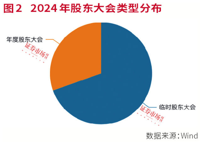 据Wind统计,2024年A股共召开股东大会17423场,其中临时股东大会占比69.6%(12122场),年度股东大会占比30.4%(5301场)。以5382家上市公司为基数计算,平均每家公司召开3.24场股东会议,较2023年提升6.7个百分点。